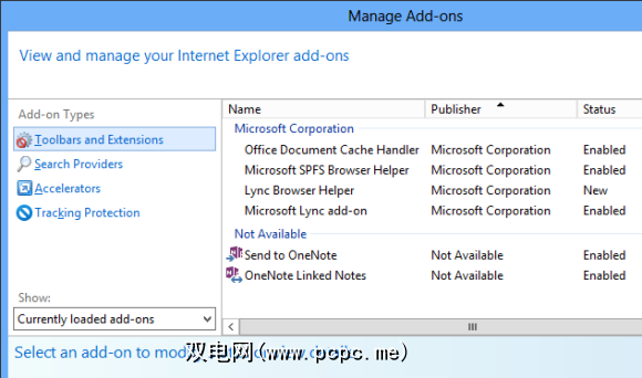 必须在台式机版本中安装和使用这些附件。为此,请切换至桌面视图,启动浏览器,然后单击右上角的齿轮/设置按钮。在出现的菜单中,选择管理加载项,然后使用加载项类型列表找到您想要的加载项(“插件"的另一个术语)采用。通过此屏幕,您可以启用,禁用或删除加载项。