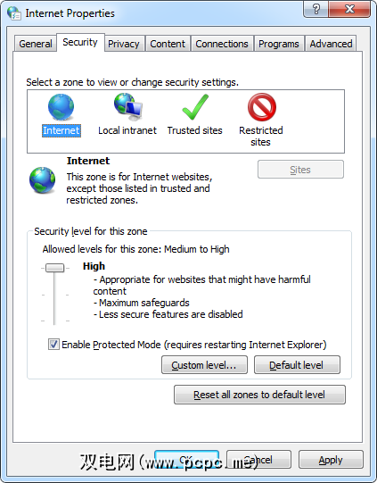Microsoft花了很长时间才通过Windows Update发布补丁程序以解决最近的安全漏洞。立即提供修补程序后,它需要用户手动干预。为了在应用补丁之前提高对恶意攻击的保护,运行Windows 7或8的普通用户可以启用Internet Explorer的保护模式并将安全级别设置为高。