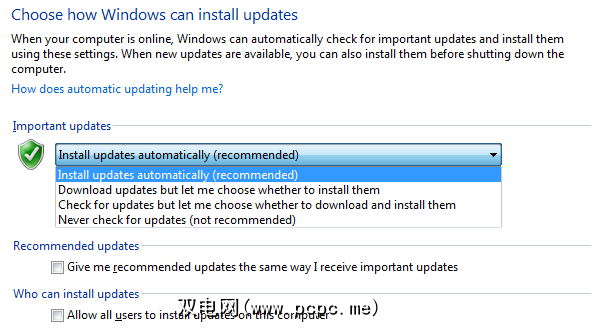 第一步也是最重要的步骤是启用Windows Update,因为Microsoft通常会及时提供安全补丁。重要更新和推荐更新都可以自动下载并安装。禁用Windows Update来自动安装重要更新的用户,在手动应用关键安全补丁之前,仍然容易受到恶意攻击。