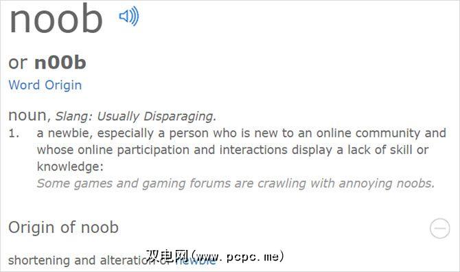 含义: Merriam-Webster将新手定义为初学者或新手。 “ noob"一词是新手的简称,语是Dictionary.com定义的:
