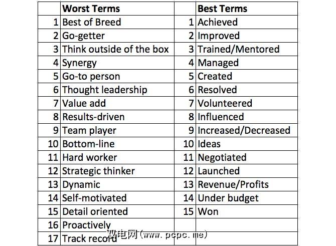您会惊讶地发现,有多少人在简历中使用同一组单词。您会惊讶地发现这些招聘人员会令人讨厌。招聘机构CareerBuilder进行了一项调查,以找出招聘人员最讨厌的词语以及他们喜欢看到的词语。完整列表如下: