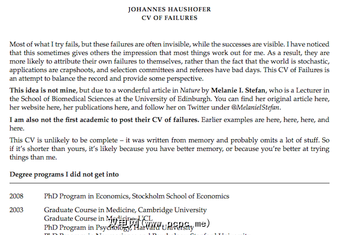 最后一条建议是基于简历的互联网最新病毒式成功。 Johannes Haushofer是普林斯顿大学心理学的助理教授。不久前,他在社交网络上分享了“失败的简历",这使Twitter着火了。这是为了提供一个清醒的职业生涯现实。但是正如哈佛商业评论所说的那样,编写这样的简历也可以使您对自己的成功有个看法。将失败与失败进行比较后,您才真正意识到自己所做的正确以及正确的做法。当然,您不能使用最好的简历构建应用程序,因此请坚持使用简单的Word文档。
