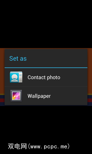 然后点击墙纸再次获取源图像,这会导致电话弹出一个上下文对话框:
