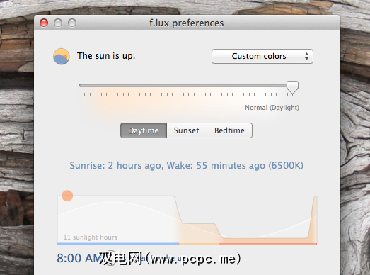 当然,您可能并不在意完全颠倒您的颜色-您可能需要依靠这些颜色来完成工作。 F.lux(免费)可以防止深夜使用计算机破坏您的睡眠周期,并且可能恰好适合您。该应用程序会在晚上将屏幕着色,这意味着发出的光与您周围的灯泡相当。该应用程序使用您的位置和时间自动应用其色调,这意味着您甚至可能根本没有注意到它在做任何事情。