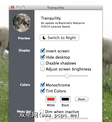 您的Mac显示器基本上是灯泡,如果您在黑暗的地方使用它,每个人都会注意到。不要让周围的每个人都受此困扰–使用“宁静"(免费)来大大减少发射的光量。