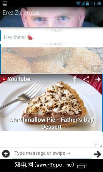在安装Invi时,它将自动接管默认的SMS应用程序,而无需注册或执行任何其他操作。它提供了您习惯使用默认应用程序的所有功能,但还包含许多表情符号,并能够在消息传递窗口内发送和查看YouTube视频。