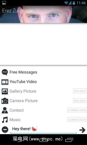 Invi用户还可以通过短信从手机的图库或其他人发送彼此的图像。直接从相机拍摄,并且很快就能彼此之间发送音乐和通讯录。这些功能并不是特别具有创新性(尽管YouTube功能非常出色),但是很不错。我确实想知道从YouTube发送不是的视频,该功能在竞争对手的应用程序中很容易使用。