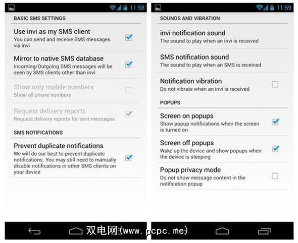 当然,如果您不需要这些弹出式窗口,则可以将其禁用,然后保留只有声音和振动。您甚至可以通过Invi为常规SMS选择两种不同的声音,以及从其他Invi用户那里获得适当的Invi消息。