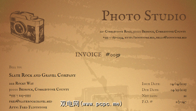 可以吸引客户的注意,顶部的加粗“发票"标签。该主题平衡了“重要文档"和“样式"。而且,如果您恰好是摄影师,那么您也可以使用通用徽标。