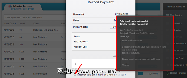 您的报价可以转换为发票,即使客户“批准"它们也可以自动将其转换为发票。发票和报价可以安排在特定的日期发送。收到付款后,可以自动发送个性化的感谢信。 但是,如果客户未能付款,该怎么办?