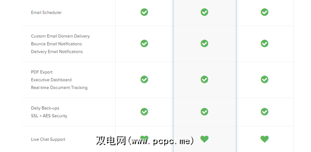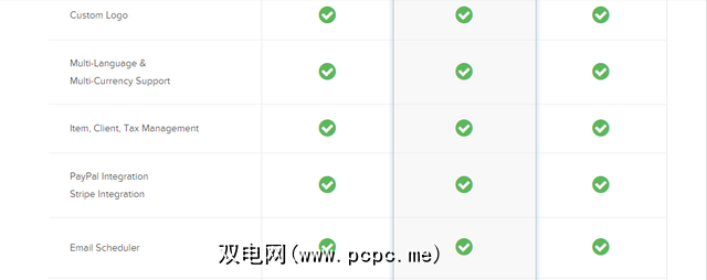 所有计划都允许自定义徽标,多语言和货币,项目,客户和税收管理,PayPal和Stripe集成,电子邮件sc保留,自定义电子邮件域支持,退回和发送电子邮件通知,PDF导出,实时文档跟踪,每日备份,SSL和实时聊天。