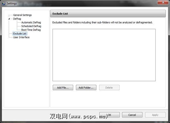 排除列表允许您防止某些文件和文件夹(包括其子文件夹)被整理碎片。