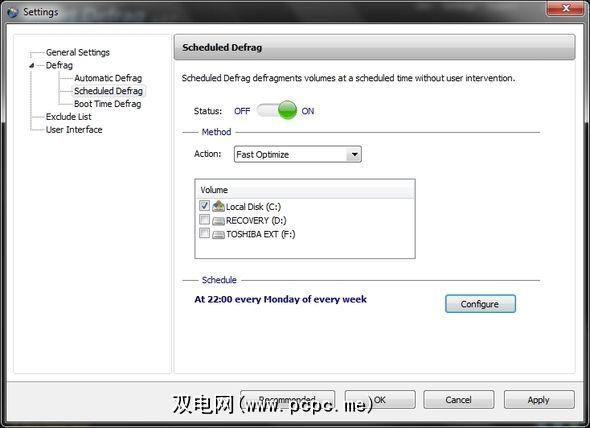 计划的碎片整理是另一个非常有用的选项,强烈建议使用。顾名思义,它使Smart Defrag可以运行而无需您提示。