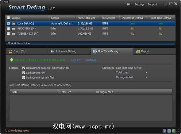 设置包含其他几个选项,我们将在后面详细介绍。文章。 支持允许您查看用户手册,访问技术支持并查看有关已安装的Smart Defrag当前版本的信息。