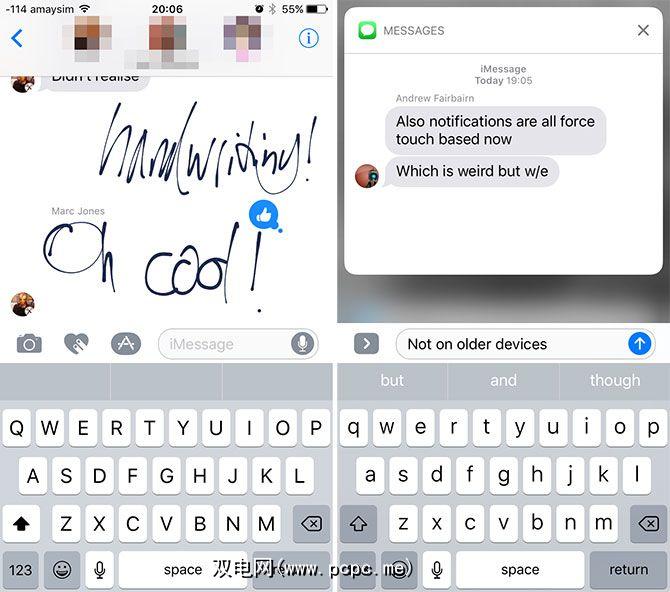 “消息"应用程序已更新,其中包含许多丰富多彩的功能,例如能够发送动画文本气泡和全屏显示效果。所有这些操作都通过“向上箭头"发送按钮完成,您可以强制触摸(或在非3D Touch设备上长按)以显示带有多个选项的气泡菜单。