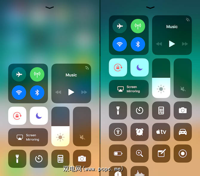 新的控制中心基于小部件和控件的概念。小部件可扩展,并且显示更多选项(例如,音乐小部件)。控件是显示为单个按钮的特定操作。您可以长按或3D触摸它们以显示上下文选项(例如Flashlight)。