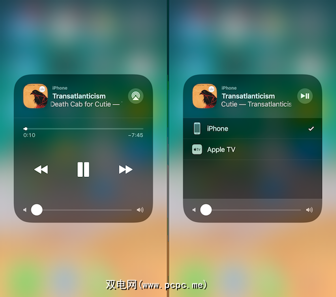 首次在控制中心上滑动时,您会看到“音乐"小部件右上角的雷达图标有点动画。点击它可以直接跳到AirPlay菜单。