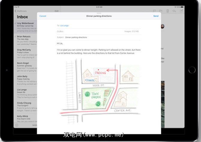 说到Notes,当您开始在应用程序中进行绘制或记下时,其周围的文本会自动移到一边。您还可以在Mail应用程序中添加嵌入式工程图。