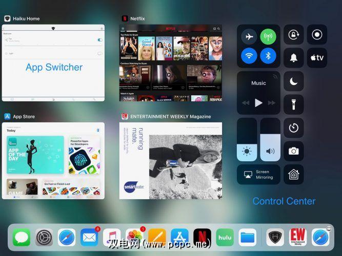 您可以通过双击“主页"按钮或通过以下方式调出应用程序切换器在主屏幕上从底部到顶部轻弹手指。