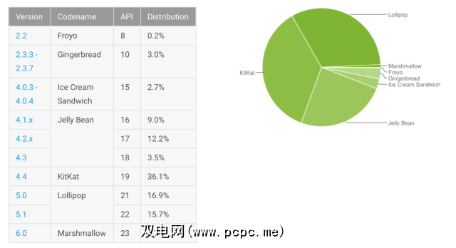 此数据(2016年1月4日由Google收集,来自Play商店)显示了问题的严重程度。只有0.7%的用户正在使用最新版本的OS,而近三分之一的用户仍在使用已使用了近三年的Android OS版本。