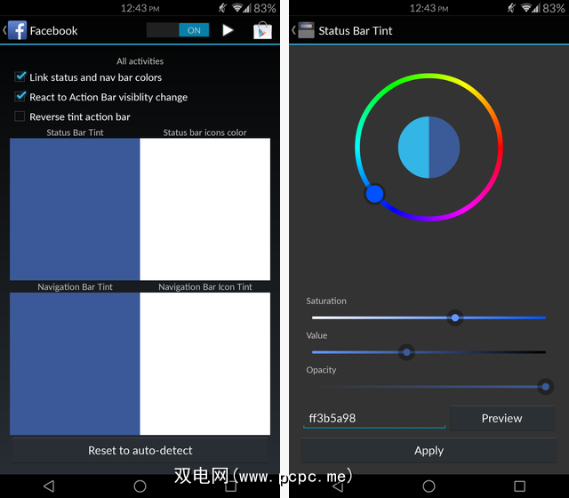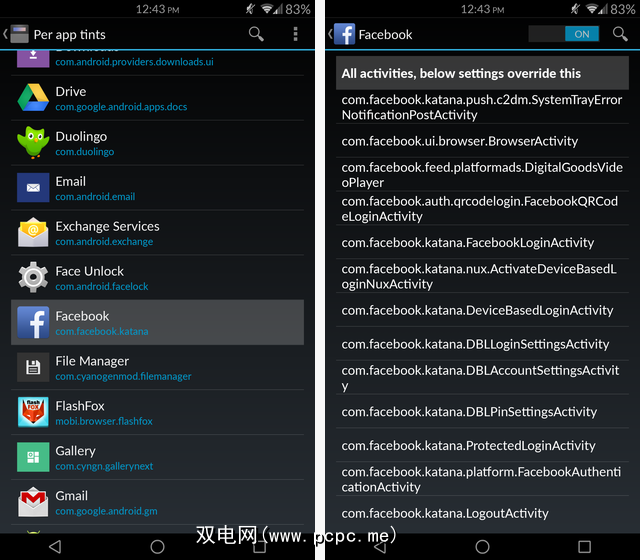 左侧是大多数Android状态栏的外观喜欢。屏幕顶部是一个黑条,无论您打开什么应用程序,该条都始终存在。但是在右侧,您可以看到使用此mod打开Facebook应用时状态栏的外观。如此小的更改如何带来如此巨大的视觉效果,真是太神奇了。