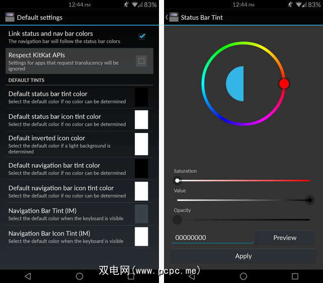 我绝对喜欢状态栏和导航栏的新颜色,而且我永远都不会回头现在变成纯黑色。如果您像我一样欣赏此mod,请前往Google Play商店并以$ 2.02的价格购买Tinted Status Bar捐赠。它不提供任何其他功能(该应用程序完全免费且无广告!),但确实支持开发人员。