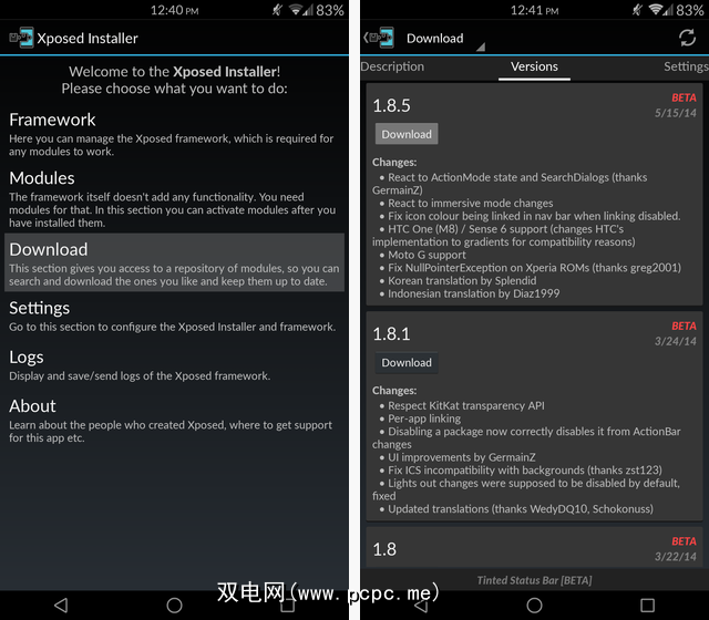 下一步,从Xposed网站下载安装程序,然后运行它,如上所示。但是,Xposed本身只是所有可以在其上运行的出色模块的框架。要更改状态栏的颜色,您需要一个名为Tinted Status Bar的模块。