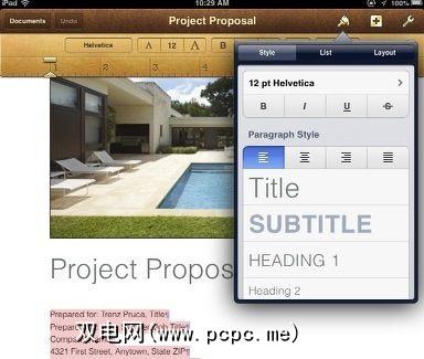 iPad的较大尺寸格式使您可以更轻松地点击并使用各种字体样式,颜色和其他类似在Word和Pages中找到的工具对于Mac。文档的布局工具位于应用程序工具栏中的画笔图标下。它具有用于段落和字体样式的设置,用于创建列表的选项以及用于设置文档布局的面板,例如列数和行距。