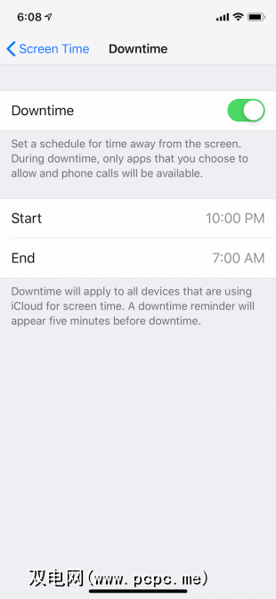 停机时间就像“请勿打扰",但对于应用程序而言。如果您发现自己在深夜使用应用程序,则可以将“停机时间"安排为上床睡觉前一两个小时。这样,您就可以极大地阻止自己使用手机。