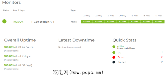 使用API会遇到麻烦吗?检查由UptimeRobot支持的服务状态网页。这将显示总体正常运行时间,并突出显示任何停机时间。