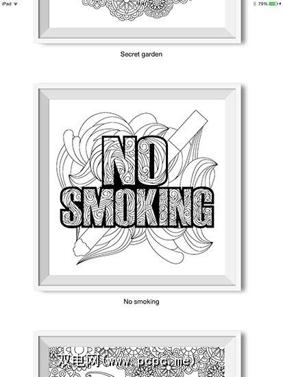 Momi Coloring是另一个完全免费的着色应用程序,其中包括令人印象深刻的22设计,包括一系列样式,从建筑和复杂的花园场景到下图所示的非传统的反吸烟设计。大多数设计都是高质量的,尽管在完全缩放时会出现一些像素化。