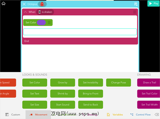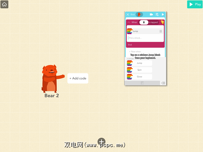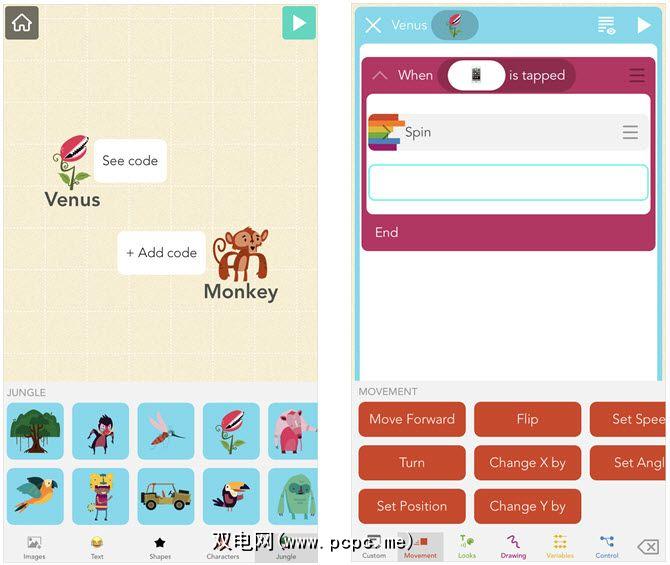 除了游戏之外,您还可以制作艺术品,音乐,电影,测验等等。您创建的每个设计都以一个对象开始。这可以是字符,形状,文本,表情符号,甚至是图像。然后,只需轻敲一下就可以添加代码,几乎可以选择无限的可能性。