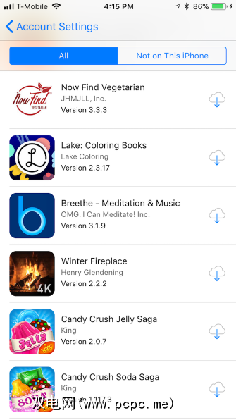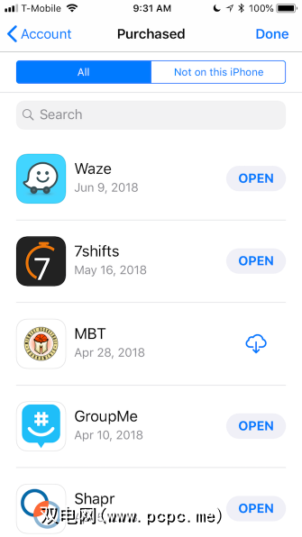 如果要查找已安装然后卸载的应用程序,可以缩小其范围。通过选择不在此iPhone上来完成操作。