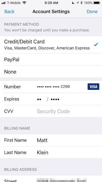 Apple不会在您实际购买商品之前向您收取费用;它只是安全地存储,以备您需要时使用。如果您要删除付款方式,则可以选择无。