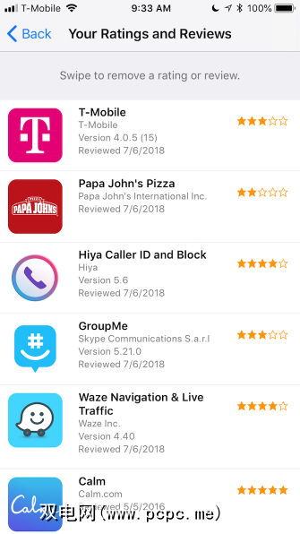 您是否对某些应用留下了评分和评论?如果是这样,您可以删除该评分或稍后查看。例如,如果某个应用更新已失去您的意见或不再使用它,则可以删除该评级。