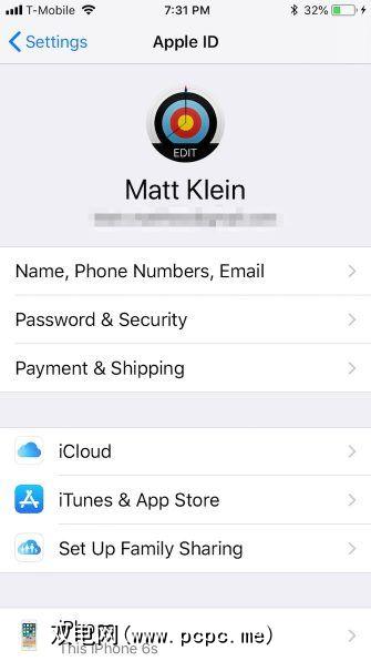 转到iPhone 设置应用,点击名称,然后选择 iTunes&App Store 。