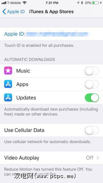这些设置非常简单。 自动下载可确定设备上的下载内容,即使该设备是在其他设备上购买的也是如此。如果您的移动运营商的数据流量有限,则可能要关闭使用蜂窝数据。