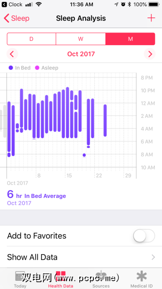 一旦您使用了足够长的就寝时间,它将使您对平均的床上时间有所了解。但是,如果您想汇编详细的统计信息,则应下载专用的睡眠跟踪应用程序。
