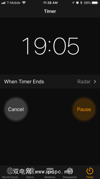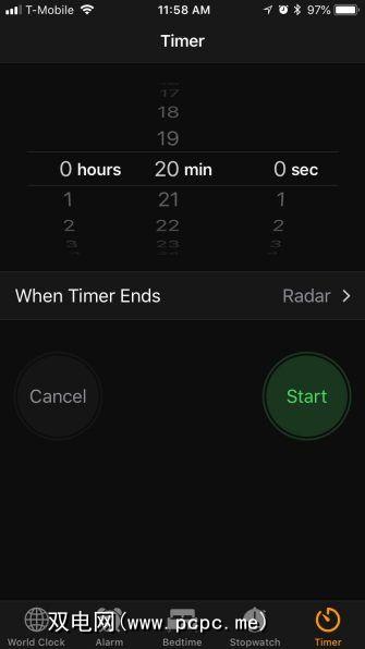 要设置计时器,请点击计时器标签。旋转拨盘以设置计时器要运行多长时间,为其分配声音,然后按开始。