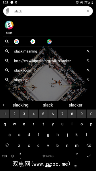 要获取内置搜索选项,您可以下载一个名为Evie Launcher的免费应用。这是一个非常简单的启动器,可让您向下滑动主屏幕来搜索手机的数据和网络,就像iOS Spotlight一样。