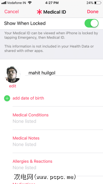 作为Medical ID的一部分,您可以添加诸如医疗条件,过敏和反应,药物等。