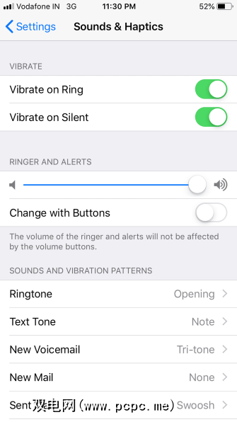 默认情况下,手机侧面的音量按钮不会调节铃声,因此请转到设置>声音,并调节铃声和警报滑块。在此处,您还可以启用振铃和静音振铃选项,以减少丢失电话的可能性。