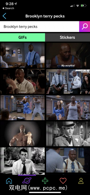 说,您要共享来自布鲁克林Nine-Nine的Terry Crews的GIF弹起他的胸肌。只需搜索布鲁克林·特里佩奇即可。