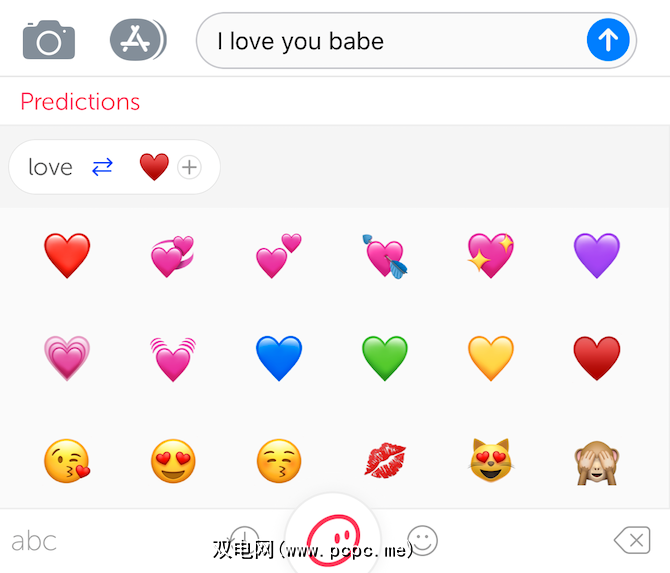 在键入消息时,如果切换到表情符号键盘,您将看到某些单词变得突出。这意味着有一个表情符号可用来代表该单词,您只需轻按该单词即可将其更改为表情符号。