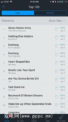 您想学习一些新歌吗?就个人而言,我更喜欢阅读乐谱,但是查找标签要容易得多,尤其是在iPhone上。实际上,您会找到几个功能强大的应用程序,其中包含数千首歌曲。尽管他们更着重于吉他,但许多流行歌曲也具有用于鼓的标签。