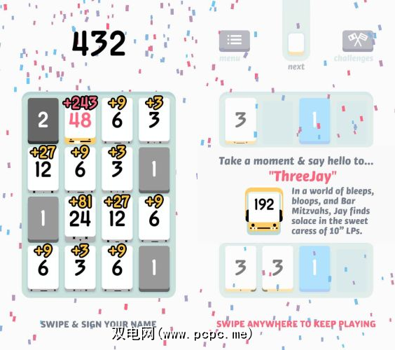 2014年Apple年度最佳游戏,Threes!是一个基于数学的逻辑难题。 4×4正方形的网格要求您将相似数量的图块堆叠在一起,但只能同时沿一个方向移动板上的所有图块。这具有挑战性,但也令人上瘾。