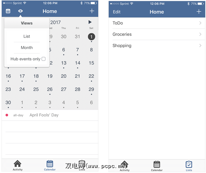 另一个不错的应用是Hub Family Organizer。像Cozi一样,Hub可让您共享家庭日历。这样,您家中的每个人都可以随时了解活动和约会的最新信息。您还可以共享购物和任务列表。要管理杂务和杂货店购物,请查看到期日期和提醒功能。