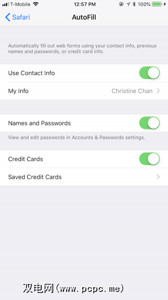 Apple的钥匙串功能会将您的帐户登录密码,甚至信用卡信息存储在iCloud帐户中。然后,您可以使用自动填充功能使iOS自动将您的信息填充到Safari中的选定字段中。绕过其他安全措施。与Siri一样,出于安全目的,您可以关闭自动填充: