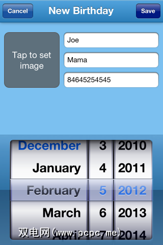 当然,您可以根据需要手动添加生日。只需单击屏幕顶部的“ +"按钮即可自行添加生日。这样可以快速完成该过程,甚至可以将图片添加到条目中,以便将其与Facebook生日及其图片融合在一起。