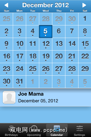 一旦导入了所有内容,您将看到一个巨大的清单主页上的朋友生日。您也可以转到日历页面,查看即将到来的生日。在“生日"页面上,列表按字母顺序排列,可帮助您找到特定的人。如果您想查看即将到来的生日列表,只需转到即将到来的页面,您会看到即将到来的生日的人,从最早到最新的排序。